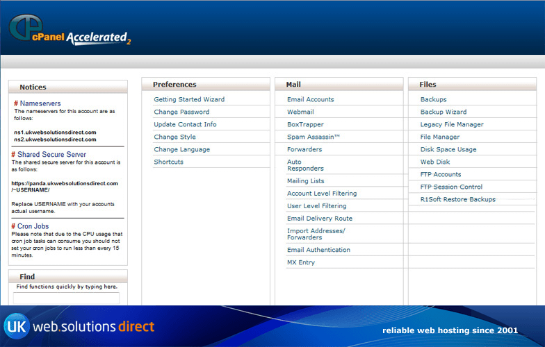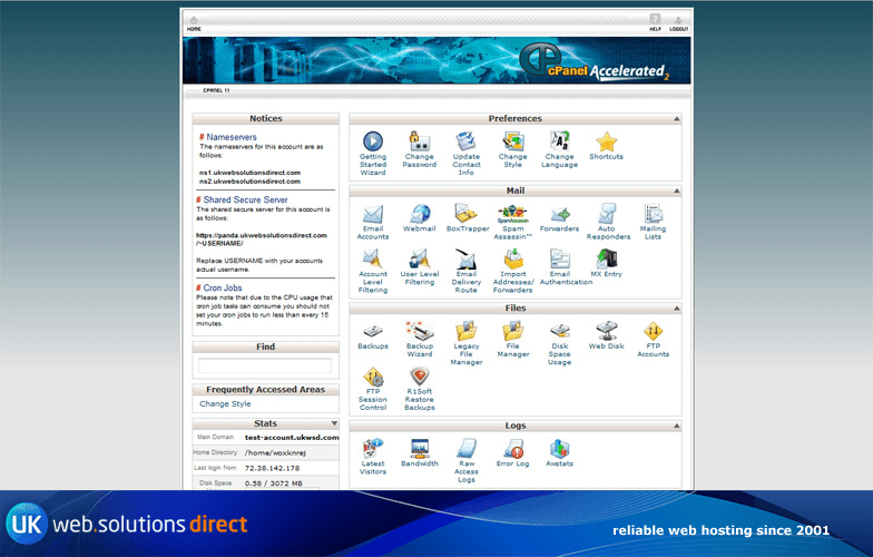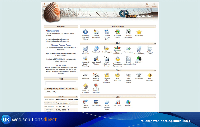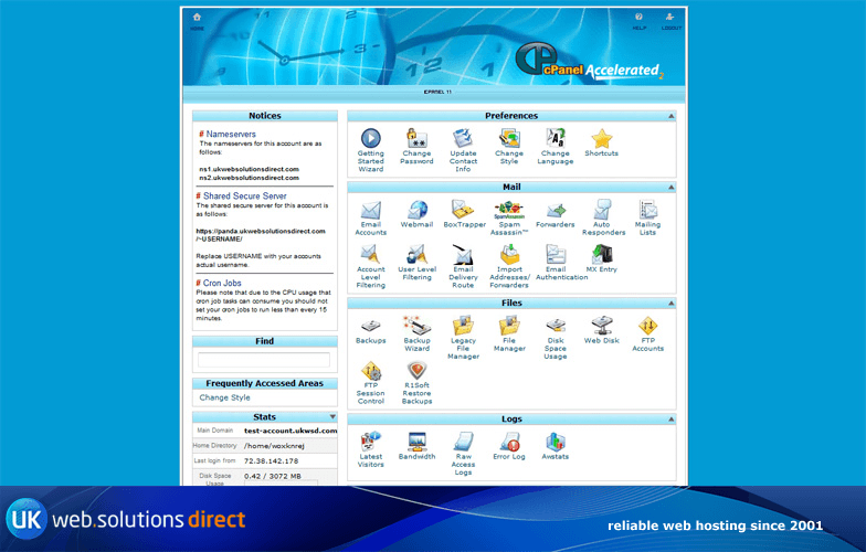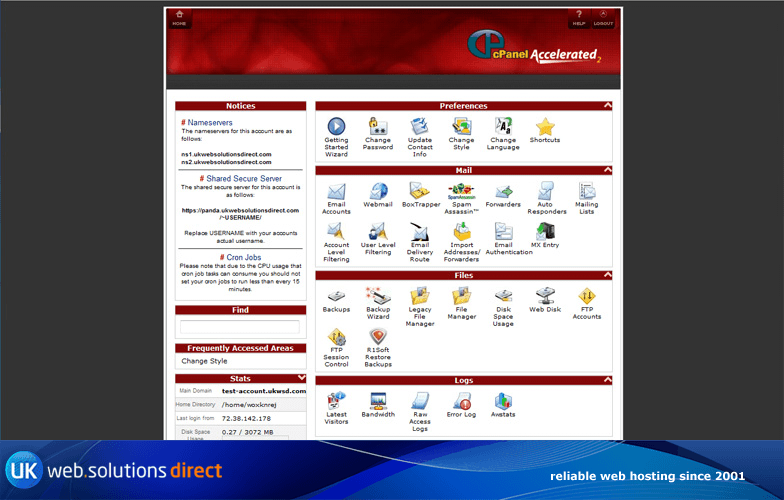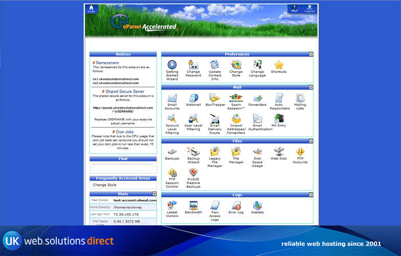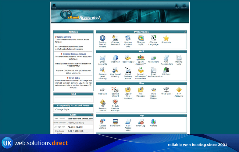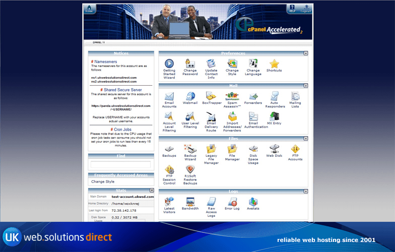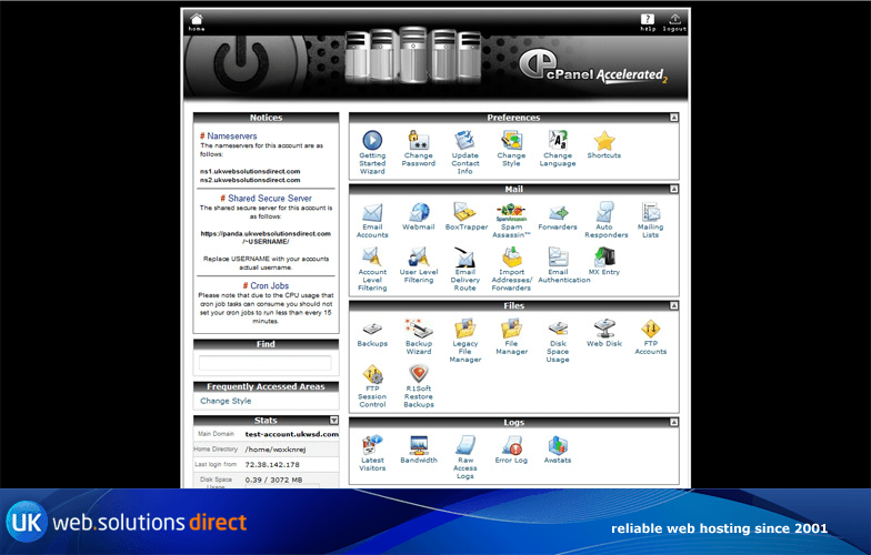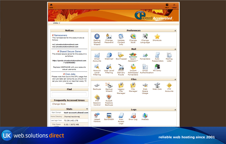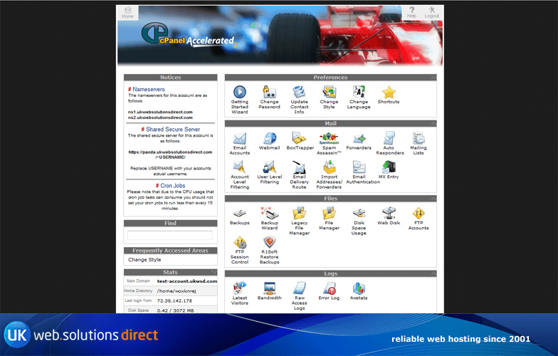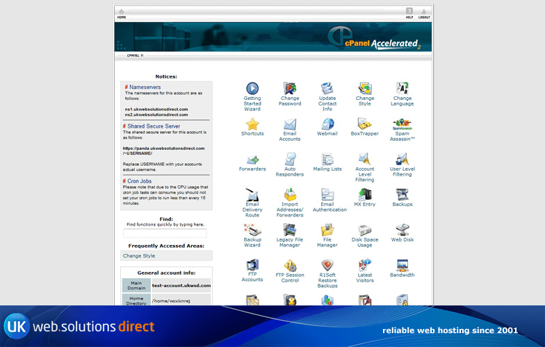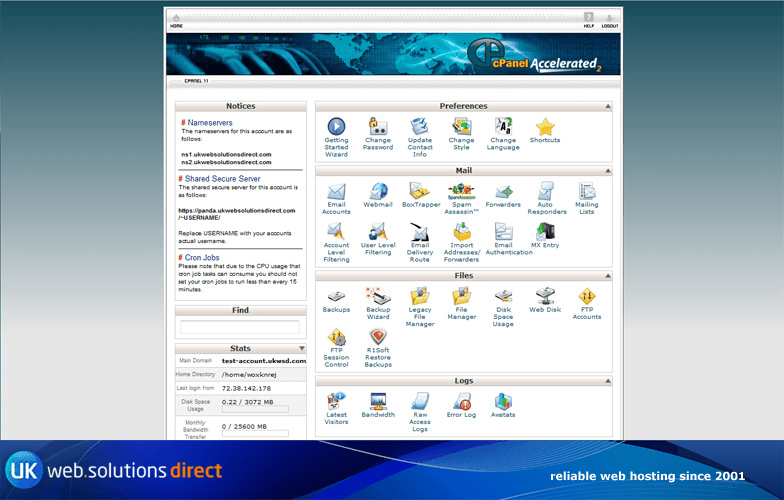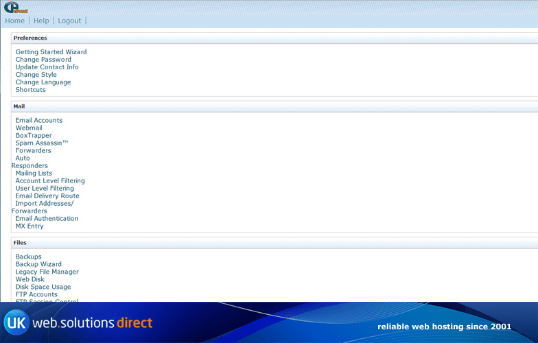 To make your life as a webmaster as easy as possible, all our UK web hosting plans and reseller hosting accounts come complete with cPanel which is one of the most powerful control panels on the market, cPanel allows you to manage and control all aspects of your web hosting account online with a few clicks of the mouse.
